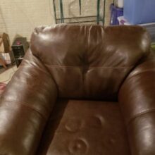 I should have taken a before photo so I could show the difference but I didn’t. We had one big tear in our “pleather” sofa as well as many scratches and small holes. Most were made by our cat walking on the couch and her nails just made little pin holes. The tear was about the size of a quarter and was caused by a bug spray coming in contact with the couch and delaminating it. I have to say, this product does a better job fixing large holes/tears than small. Our couch is chocolate so I used the black. I also did’t need the patch material. Applied one coat, gave about an hour to dry then reapplied. You can’t see the big hole unless you look for it. so much better than before.