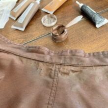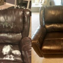 I used this leather repair kit to repair a set of leather stools that were in horrible shape. The product worked great! However, there was not enough product to complete my repair. I think this is an excellent product for small leather repairs. I would love it if the company sold larger tubes of individual colors but as of this writing they do not. I have also have leather chairs to repair. I’m including the before and after photo of one of my stools.