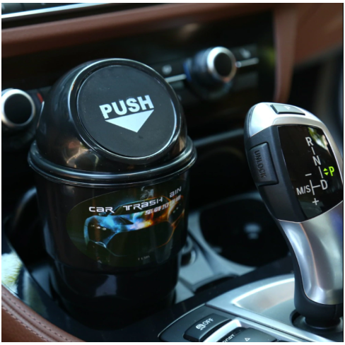 Made from non-toxic ABS plastic, our little trash bin mimics the look of large, full-sized trash cans, with a “PUSH” logo at the lid opening. The can fits right into a standard-sized cup holder for a trash bin for snack wrappers right within your reach. The can measures 7.9 x 2.7 inches (L x W).
